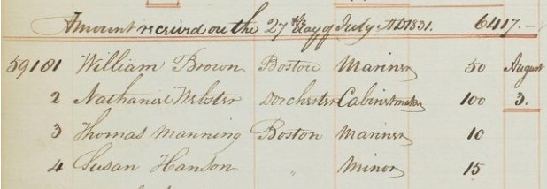 Thomas Manning largely remains a mystery: Beyond his marriage to Venus Sylvester in 1809, there is a Thomas Manning listed as making a deposit to the Provident Institution for Savings in 1831. Of course, it may be a mere coincidence that a man with the same name as Venus’s husband uses the same bank as Venus. But it’s a lead. And it’s further interesting that this Thomas Manning’s occupation is listed in the bank register as “mariner.” Sailing often offered the best opportunity for African American men to earn money and Thomas working in the notoriously dangerous trade could offer explanations as to where Venus’s money came from and why it is hard to track Thomas Manning’s death.