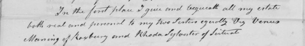 I built out Venus and Fruitful’s family tree on WikiTree to link everyone from Norwell’s Wildcat community that was mentioned in her will; if you want to explore further notes on the Sylvester siblings and to see Venus’s connections to her to friends and neighbors in Norwell’s Black community, start with the profile I created for Venus.