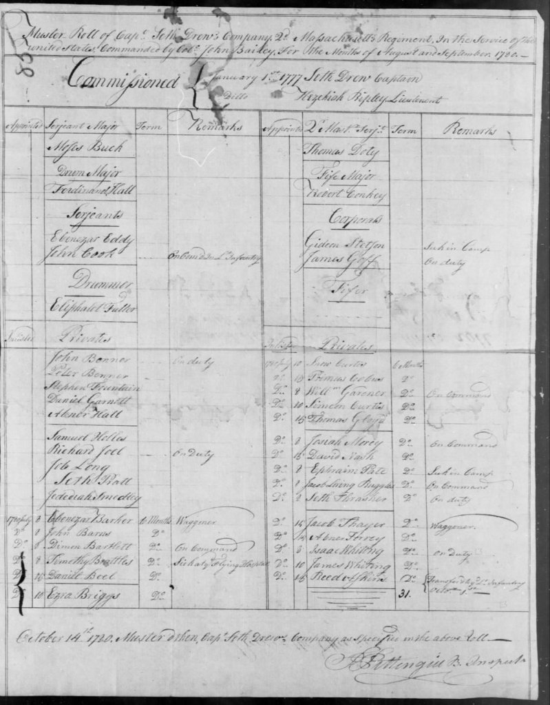 Primus Cobus appears in this muster roll for the 2nd Mass. Regiment, Capt. Drew’s Company for September 7, 1780. FamilySearch.org