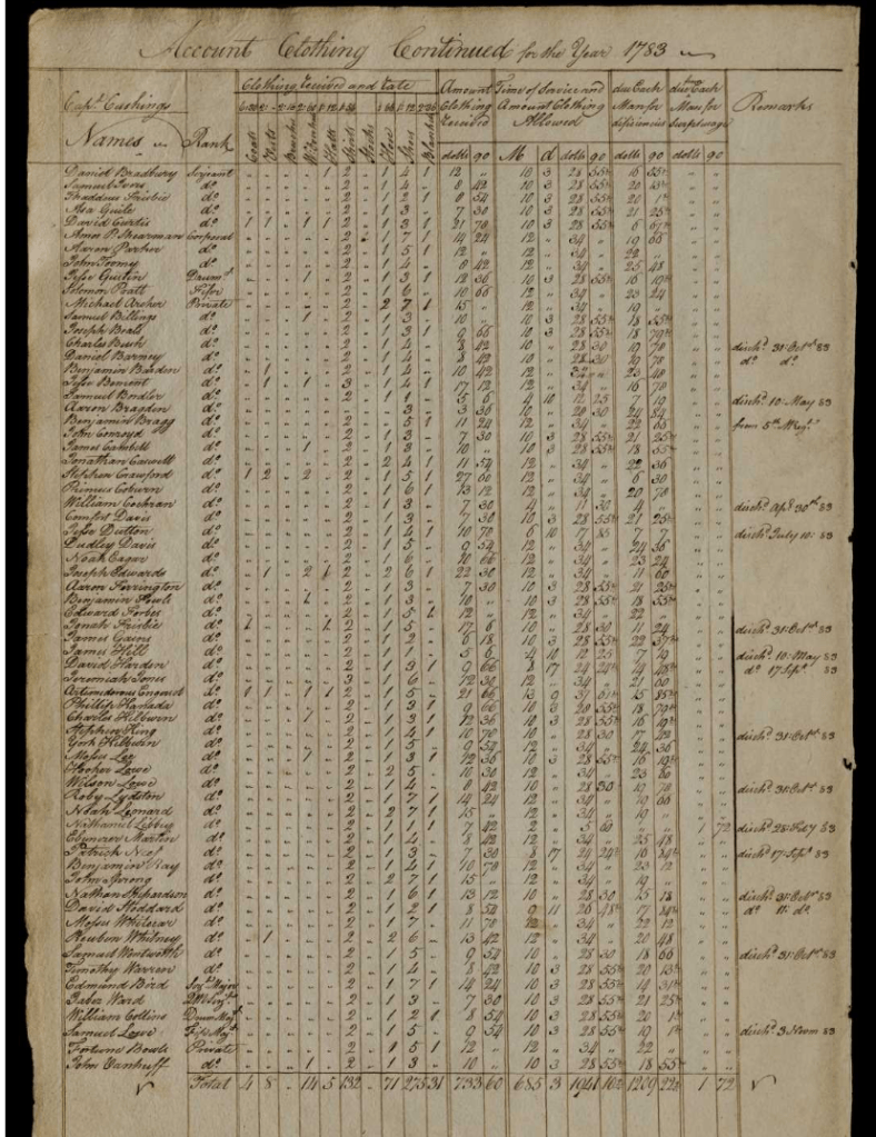 Nestled in one of the Dyer’s archival collections of colonial-era documents is a list of “the names of three years men from the Town of Abington hired in the year 1781.” The task that these men were hired for was three years service in the Continental army. The document is a bounty list; it’s a list of men due a bounty—a cash bonus paid by towns above a soldier’s monthly salary as a recruitment incentive to aid towns in meeting their state-mandated quota of soldiers.