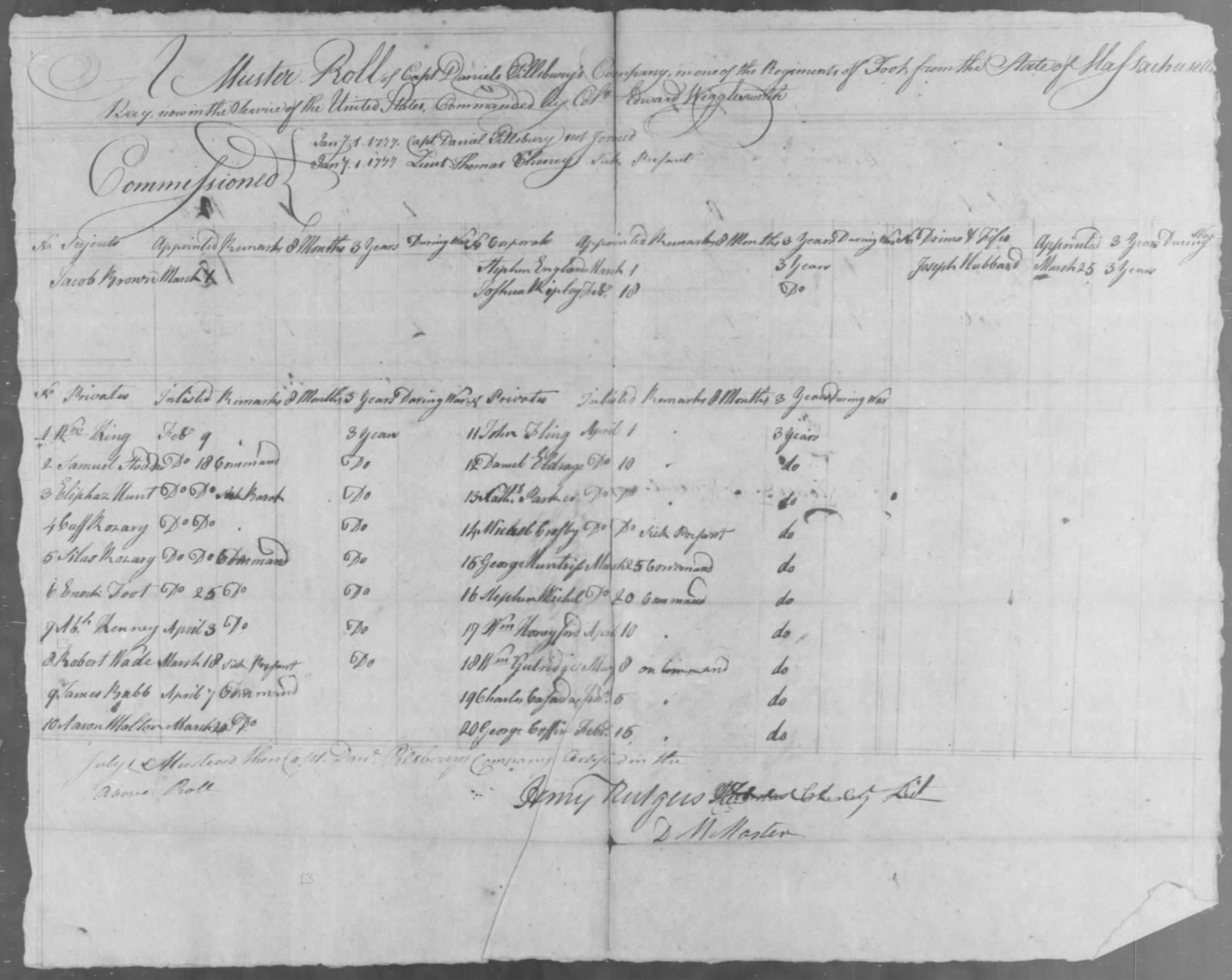 Muster roll index card for serviced dated 1781. FamilySearch.org