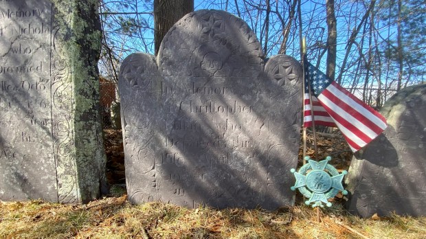 Revolutionary War marker found in the Old Town Burying Ground in Rockland (formerly Abington’s east ward).