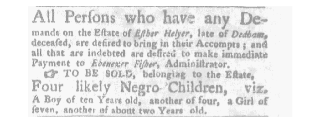 Abington resident Priscilla’s parents are, like Phillis’, unknown. And like Wheatley Peters, the first record of Priscilla is as an enslaved child.