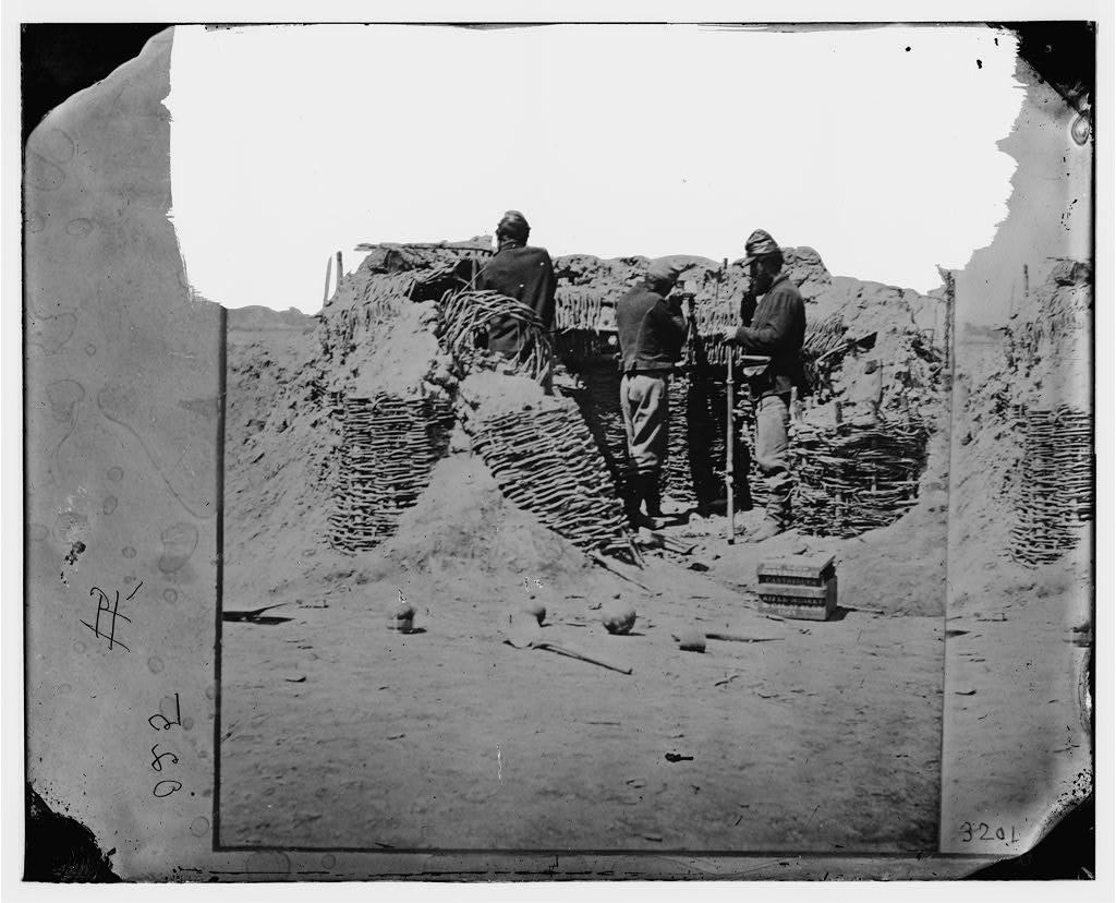 Dutch Gap, Virginia. Picket station of Colored troops near Dutch Gap canal. Library of Congress.