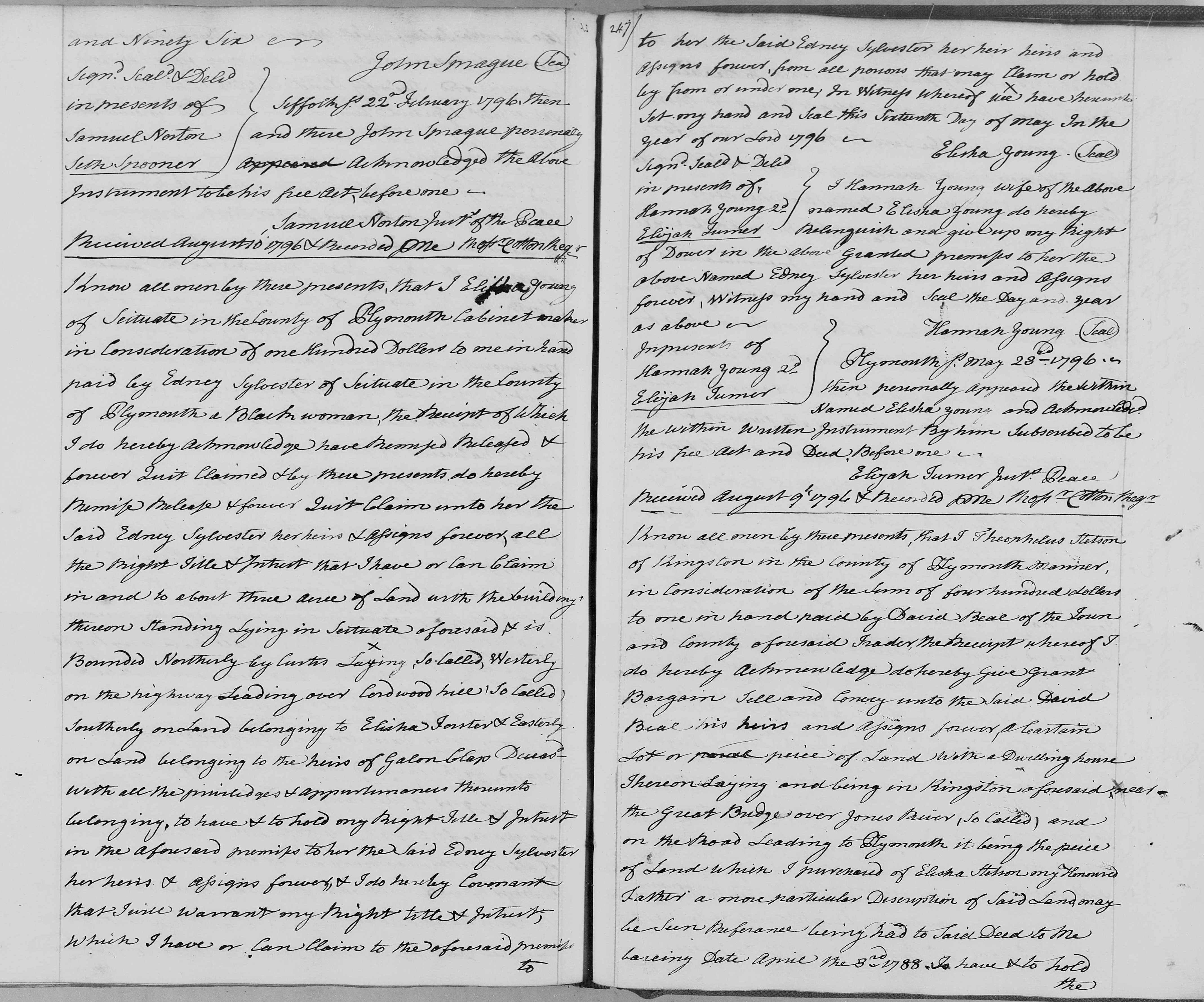 A Plymouth County deed records a three-acre purchase from Melzar Stodder near Grey’s/Cordwood Hill. Fruitful sold most of that property in 1795. Then, in 1796, Edna, noted as “a Black woman,” appears by herself on a deed recording a land purchase, seemingly repurchasing the property.